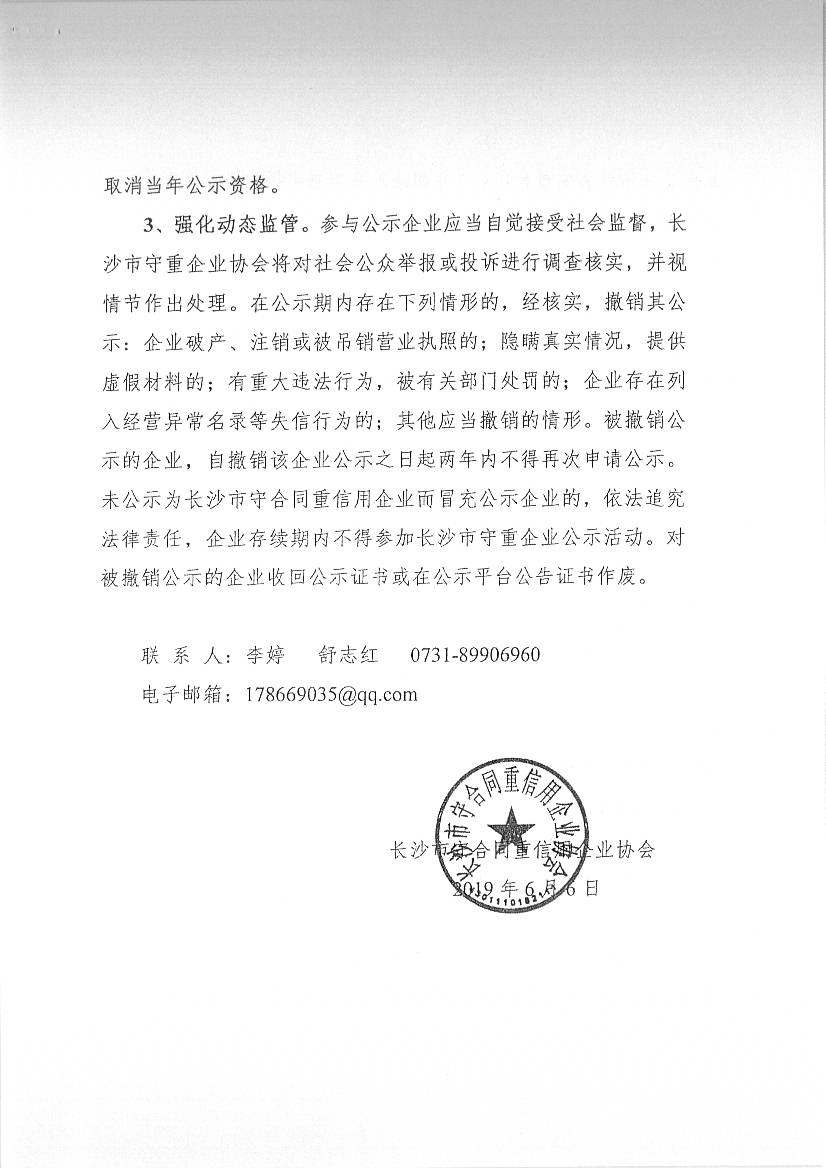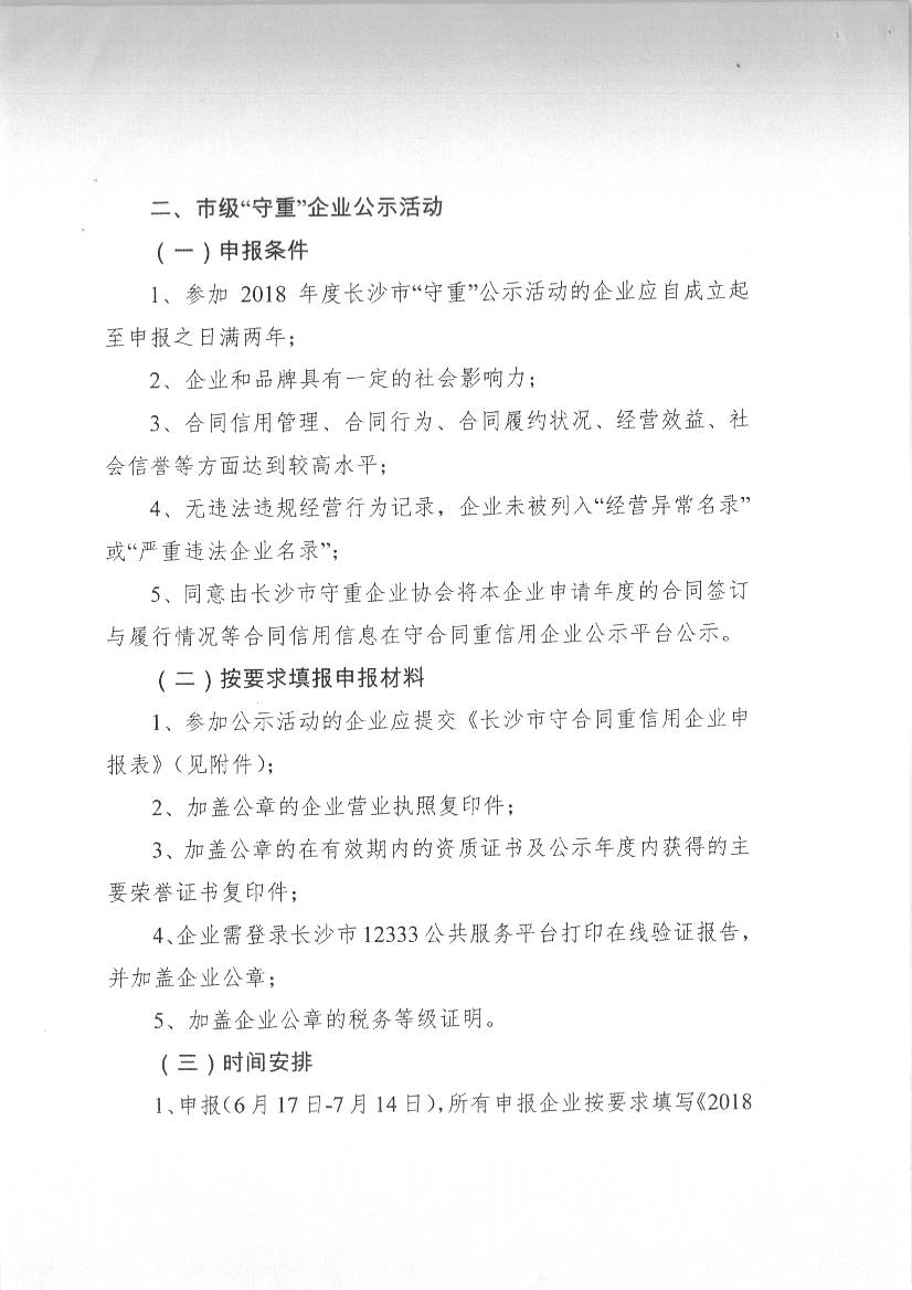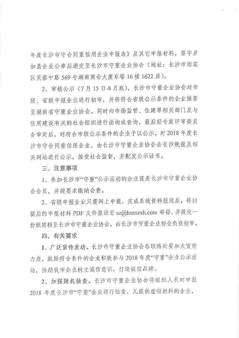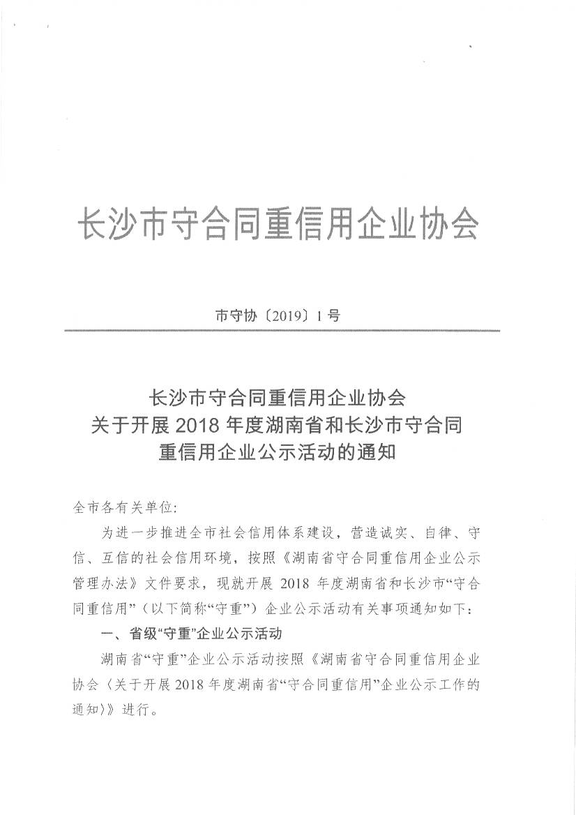長沙市守合同重信用企業協會關于開展2018年度湖南省和長沙市守合同重信用企業公示活動的通知